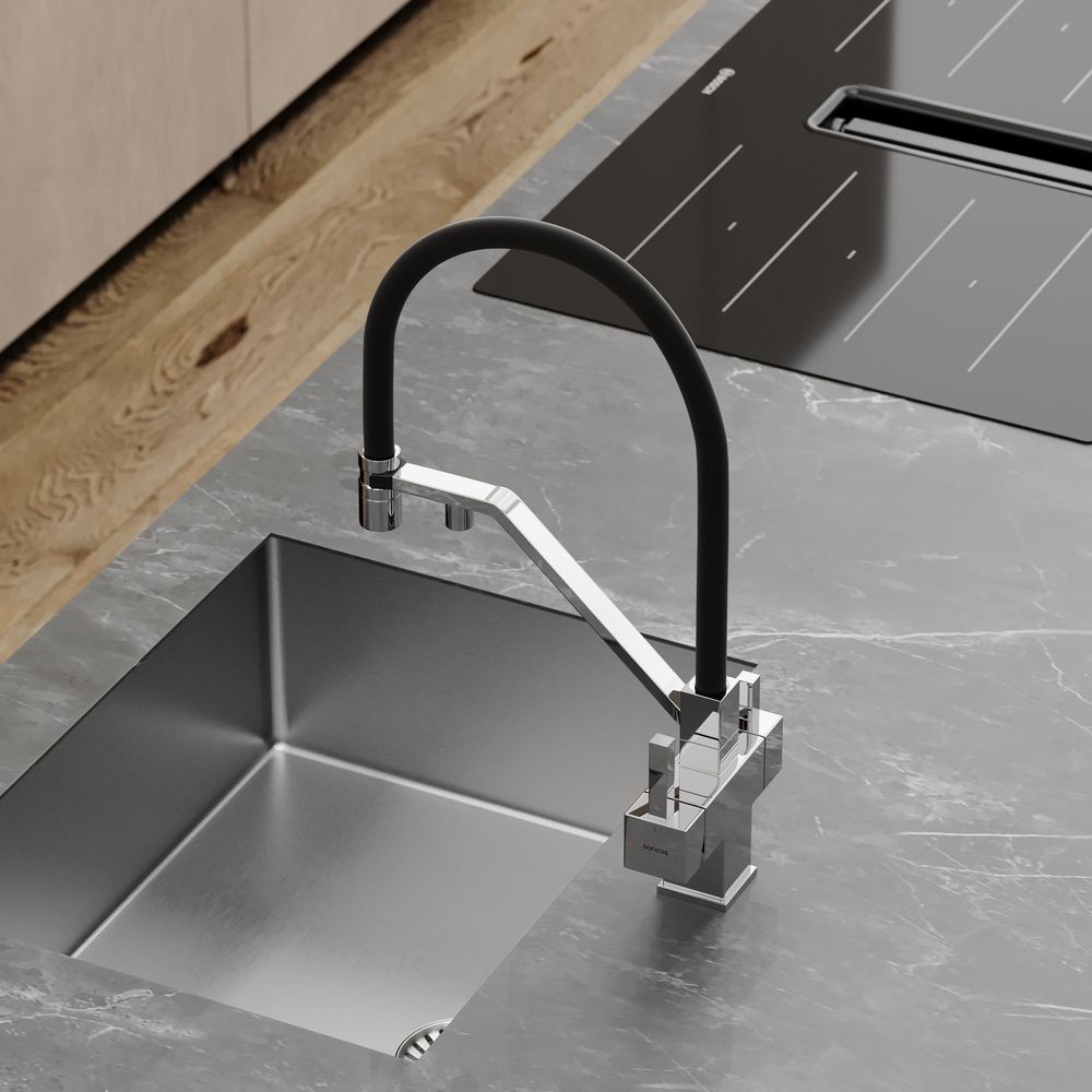 Смеситель для кухни SANCOS Loro с гибким изливом и возможностью подключения фильтра для воды, цвет хром, арт. SC4007CHФункция "Холодный старт" - при включении смесителя активируется холодной поток, для экономии горячей водыАэратор, гибкая подводка, ключ и крепления для монтажа