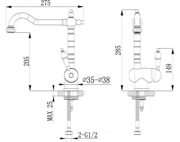 - Высота смесителя:28.5
