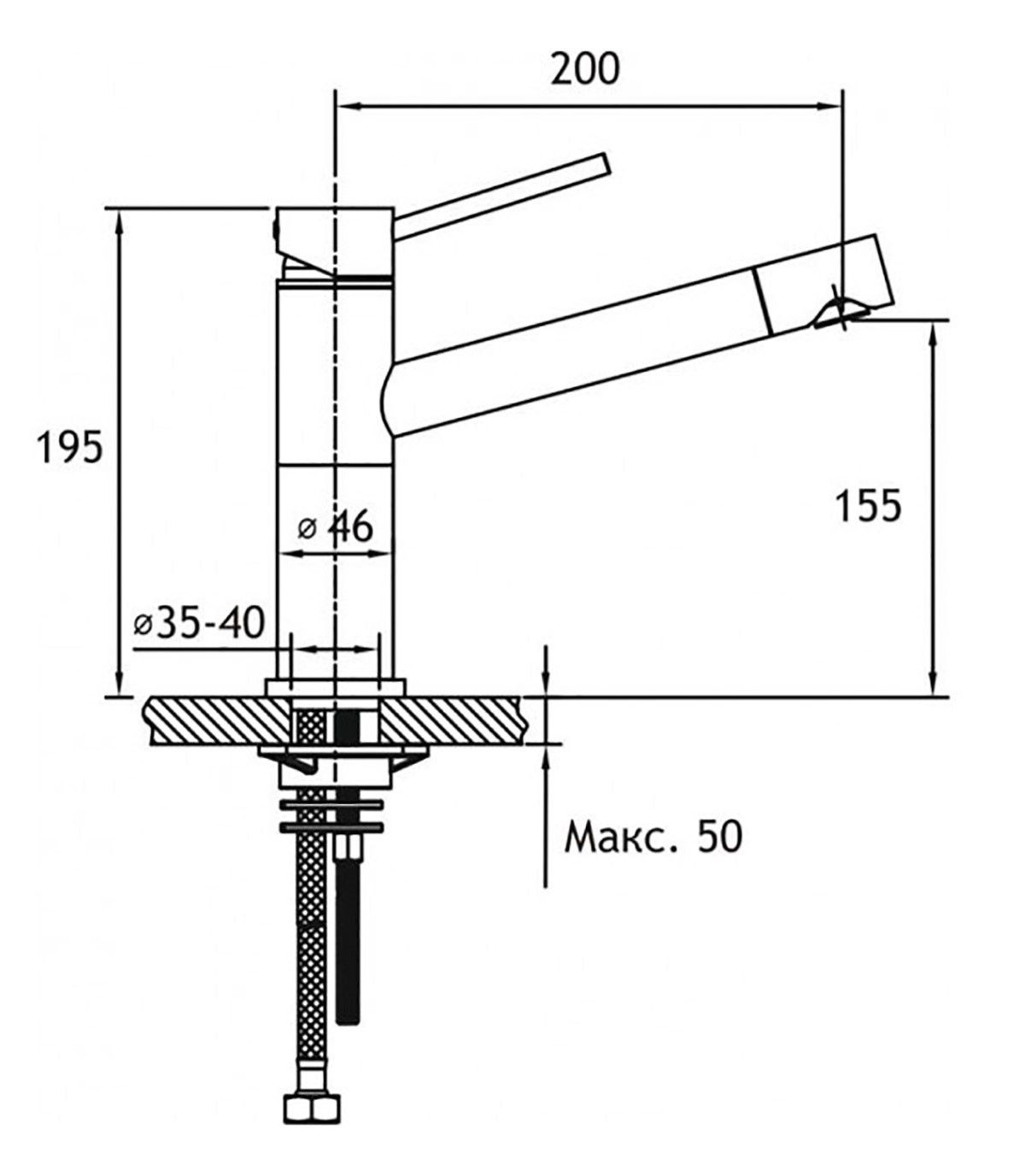• Высота смесителя: