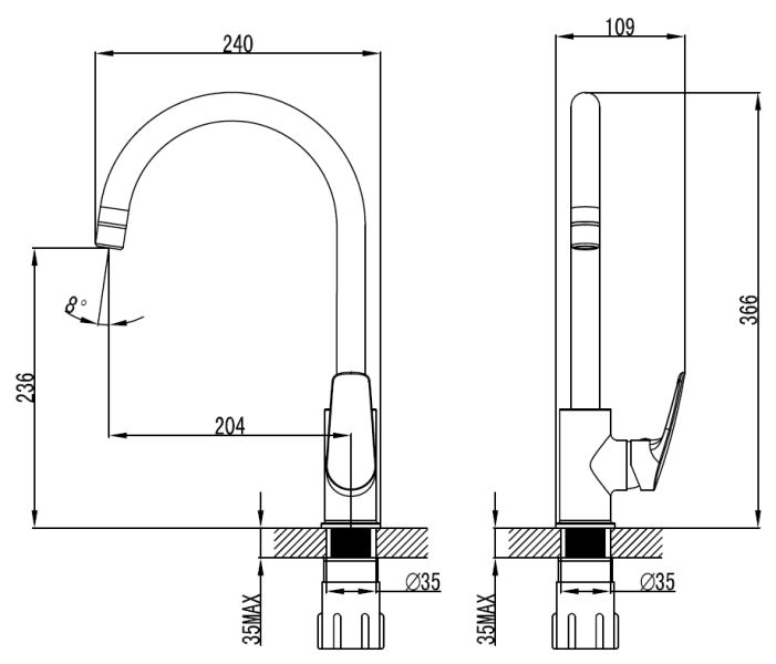 • Вращение излива поворотный