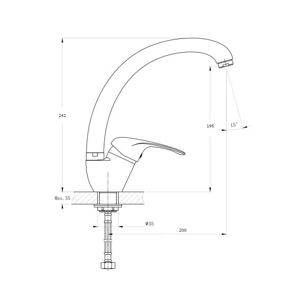 Смеситель для кухни с поворотным изливом RUSH арт.CO4240-22 из коллекции Corsica c металлической ручкой имеет рычажное управление.В смеситель установлен картридж D-40 (RSH202) с керамическими пластинами. Высота смесителя 251 мм. Излив поворотный 360гр, 200 мм. Высота излива до аэратора 205 мм. Аэратор изготовлен из пластика с нержавеющим корпусом, угол наклона аэратора -15 гр.В комплекте гибкая подводка с латунными гайками 35см - 2 шт, присоединительная гайка S-32(34)мм, втулка-31мм, фум-лента, индивидуальный пакет, паспорт, гарантийный талон.