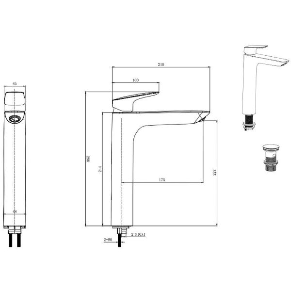 Донный клапан в цвет смесителя из нержавеющей стали марки SUS 304.