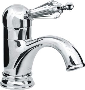 Смеситель Boheme Brillante Ripresa 341 для раковины несравненный выбор в дизайне современной ванной, который идеально впишется в ваш интерьер. Смеситель Boheme Brillante с легкостью можно установить на любую раковину. Благодаря удобной конструкции однорычажных моделей, процесс регулировки температуры воды и интенсивность струи можно произвести одной рукой без особых усилий.Латунь, кристаллы Swarovski использованная в конструкции смесителя Boheme Brillante 341 соответствует всем необходимым стандартам качества и является абсолютно безвредной для здоровья. длина излива 12.4 см и высота излива 5.5 см - это оптимальные параметры у смесителя Boheme 341, предотвращающие разбрызгивание. Излив Boheme Brillante так же оснащен функцией вращения, что значительно упростит использование смесителя. Конструкция модели Boheme Brillante позволяет превосходно установить смеситель на раковину. Смеситель для раковины Boheme 341 выполнен в стиле ретро, что восхитительно прослеживается в его форме. Марка Boheme, родиной которой, является Италия, создает смесители качества с высокотехнологичного оборудования, благодаря чему смесители отличаются долговечностью и надежностью. Смеситель Boheme Brillante Ripresa 341 для раковины позволит обновить ваш санузел, и станет его изюминкой.