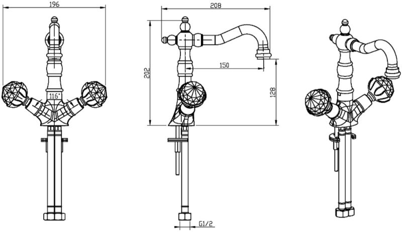 Смеситель Boheme Imperiale Presente 332 для раковины важнейший предмет сантехники в любой ванной комнате. На раковину безупречно впишется смеситель Boheme Imperiale Presente. Особенностью двухвентильных смесителей является наличие двух раздельных вентилей для регулирования холодной и горячей воды.Латунь, кристаллы Swarovski из которой произведен смеситель Boheme Imperiale Presente 332 отличается высокой прочностью и произведена без использования вредных компонентов. длина излива 15 см и высота излива 12.8 см - это оптимальные параметры у смесителя Boheme 332, предотвращающие разбрызгивание. Конструкция модели Boheme Imperiale Presente позволяет прекрасно установить смеситель на раковину. Смеситель для раковины Boheme 332 выполнен в стиле ретро, что отлично прослеживается в его форме. Марка Boheme, родиной которой, является Италия, создает смесители качества с высокотехнологичного оборудования, благодаря чему смесители отличаются долговечностью и надежностью. Смеситель Boheme Imperiale Presente 332 для раковины принесет комфорт, как в компактную ванную комнату, так и в большой санузел.