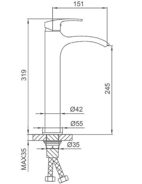 • Высота смесителя: