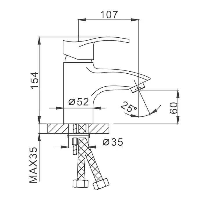 • Высота смесителя: