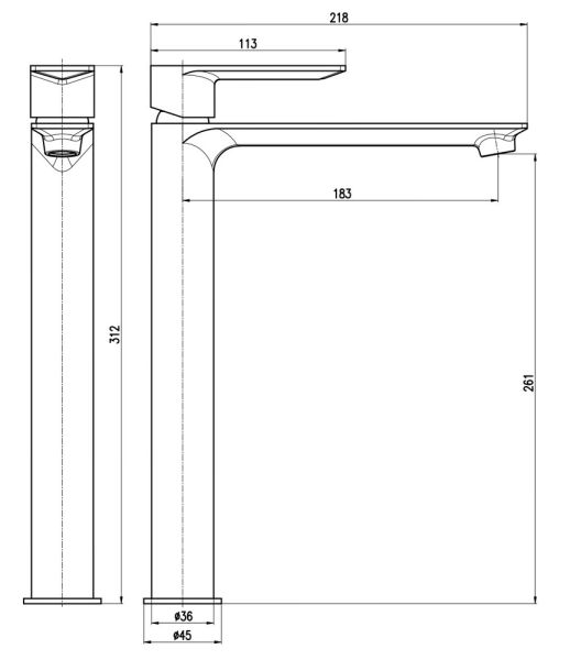 • Высота смесителя: