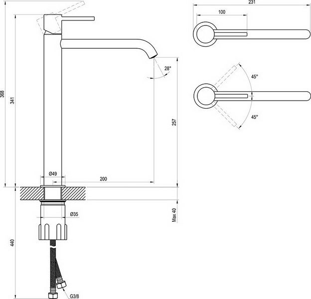 • Высота смесителя: