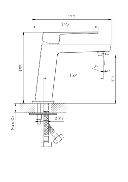 • Высота смесителя: