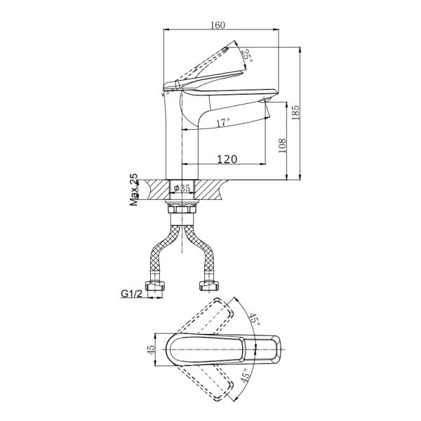 Смеситель для раковины RUSH арт. NE1735-12blak с металлической ручкой из коллекции Nevis изготовлен из высококачественной латуни и имеет рычажное управление.В смеситель установлен картридж D-35 с керамическими пластинами. Высота смесителя 185 мм. Излив литой неповоротный 116 мм. Высота излива до аэратора 108 мм. Аэратор изготовлен из пластика с нержавеющим корпусом, угол наклона - 17 гр. В комплекте универсальная присоединительная группа для установки на горизонтальную поверхность, гибкая подводка с латунными гайками 40 см - 2шт, фум-лента, индивидуальный пакет, паспорт, гарантийный талон.