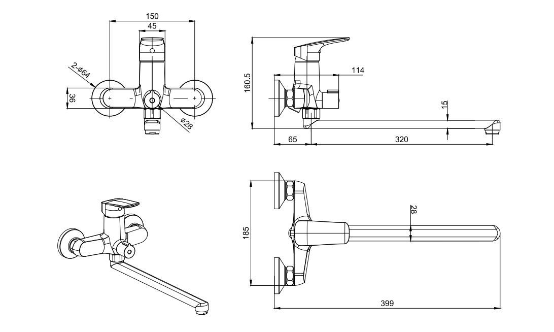 Межцентровое расстояние (мм): 150
