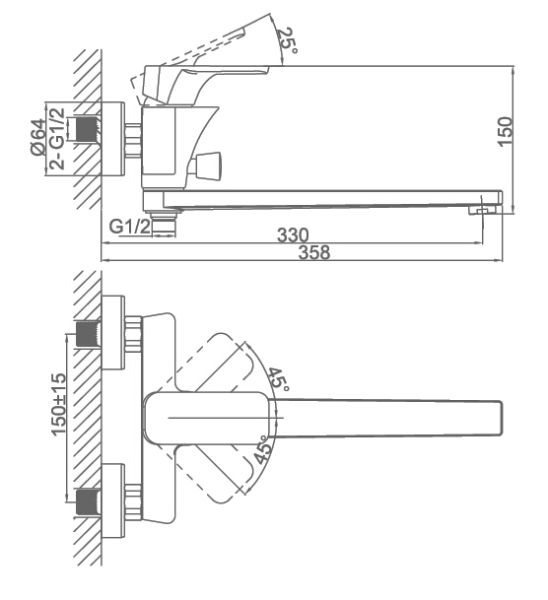 - Длина излива, см:33
