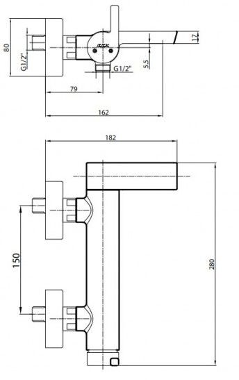 • Длина излива: 16.2 см