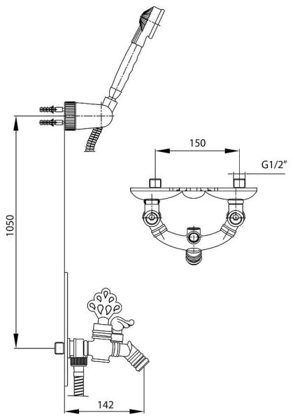 Смеситель для ванны E.C.A. Ottoman 102202001EX антик лак купить