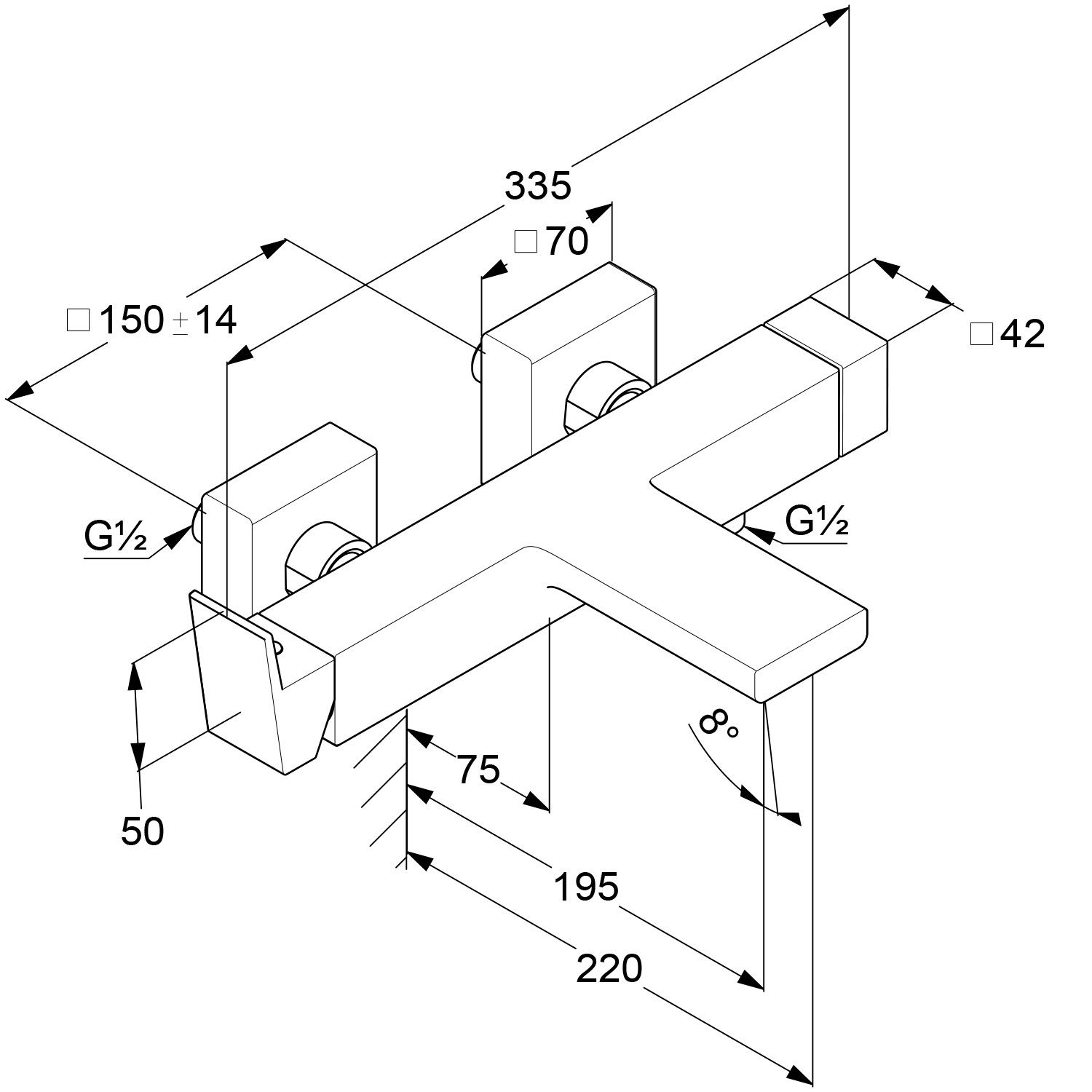 однорычажный смеситель для ванны и душа настенный монтаж литой рычаг аэратор М 24 х 1 керамическ... Подробнее