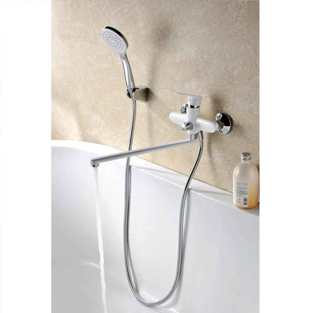 16307 Смеситель Triton для ванны, длинный излив, однорычажный, белый