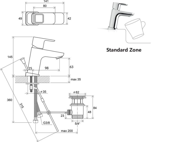 - исполнение: смесители 10° имеют стандартную или увеличенную высоту