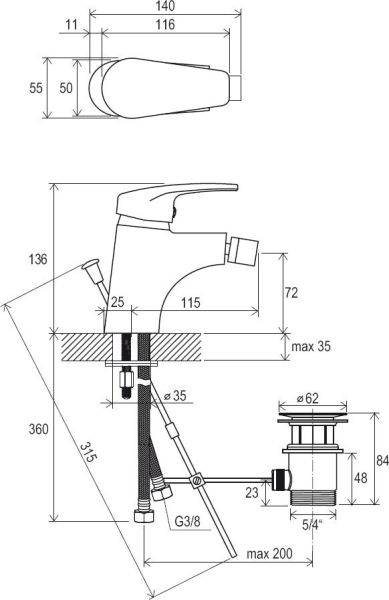 - соединительные шланги: гибкий 360 мм, диаметр G3/8