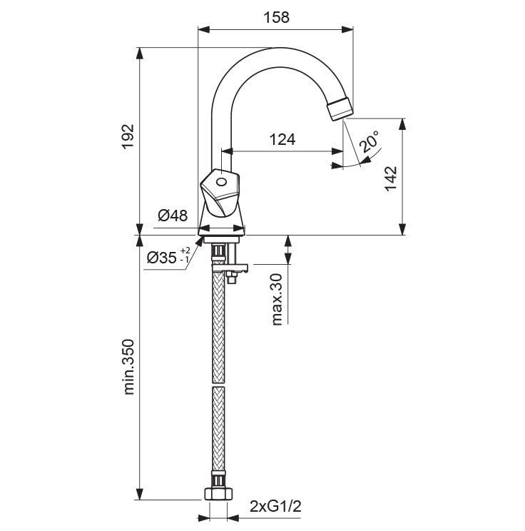 LIFE Смеситель для умывальника, поворотный излив 124 мм.