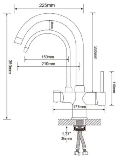 • габариты смесителя (ВхД): 350х225 мм
