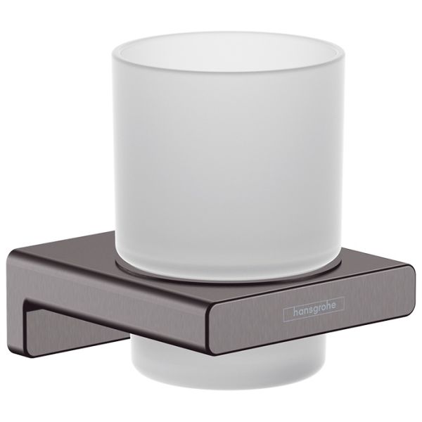 Hansgrohe AddStoris 41749340 Стакан для зубных щёток с металлическим держателем. Стакан: матовое стекло, держатель: шлифованный черный хром.
