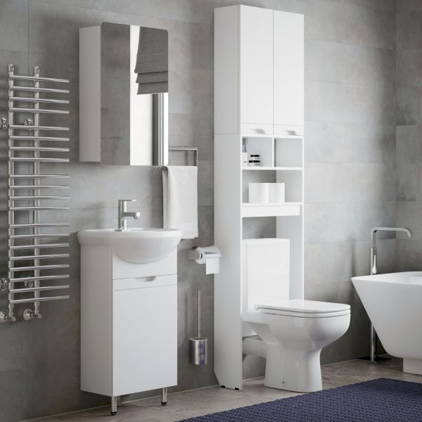 Шкаф Corozo Лея, 55 см, для установки над унитазом, цвет белый, SD-00000098Коллекция мебели для ванных комнат "ЛЕЯ" создана для тех, кто ценит простоту форм, сочетание округлых и прямых линий, удобство эксплуатации. У мебели коллекции «ЛЕЯ» корпус выполнен из ЛДСП, фасады - из влагостойкой плиты МДФ, покрытие – пленка ПВХ. В верхней части стойки расположены полки, в нижней части - высокие боковины. Фурнитура с лицевой стороны фасадов отсутствует, вместо нее предусмотрены интегрированные ручки с декоративной полосой тонкой фрезеровки.