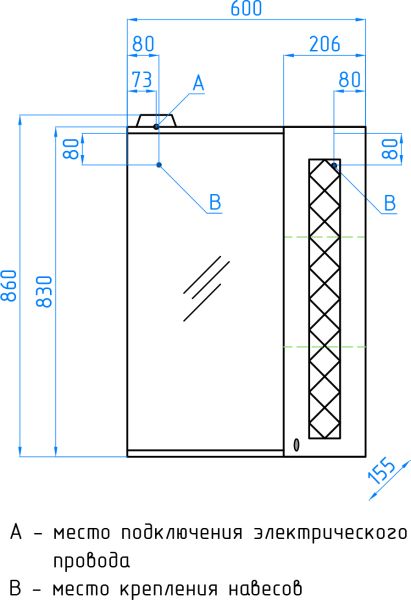 - Тип:зеркало-шкаф с подсветкой
