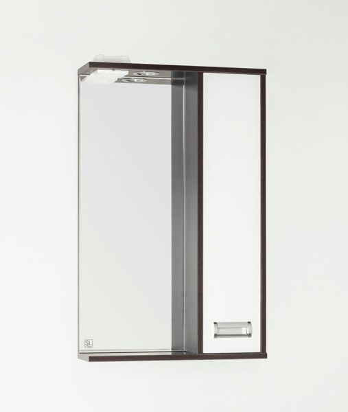 Зеркало-шкаф бренда "Style Line" коллекции "Панда 50/С Стиль(W)" с высокоточной обработкой кромки фацетом и подсветкой. Фурнитура - хром. Кромка зеркала "Панда 50/С Стиль(W)" зашлифована, что защищает от порезов. Лазерная гравировка фирменного логотипа. Край полочек имеет трапецевидную еврокромку. Эксклюзивный декор "Луино" - ламинация внутренней стороны изделия