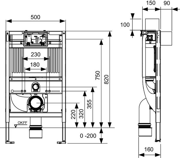 Модуль унитаза для крепления на профиле TECEprofil или монтажа перед стеной. Совместим с универсальным соединением унитаза-биде со скрытым соединением водопровода и электропитания, например, Geberit AquaClean 8000/Sela/Mera, Duravit SensoWash C, V & B ViClean, TOTO RX/SX/SG 2.0/EK 2.0/GL 2.0, VitrA V-care. Также можно подсоединять изделия других производителей. При этом предварительно необходимо проверить расположение соединений. Комплект поставки предварительно собранного блока: Сливной бачок Uni с приводом спереди: • Надежный бак из ударопрочного пластика • Предварительно собранный и опломбированный сливной бачок • Соединение для сливного бачка с внутренней резьбой 1/2" • Объем бачка 10 литров: предустановленный объем стандартного смыва 6 литров, можно настроить объем смыва 4,5/7,5/9 литров; объем малого смыва 3 литра для системы двойного смыва. Оставшийся объем можно использовать для быстрого смыва. • Изоляция для предотвращения образования конденсата • Для панелей и рукояток смыва унитазов TECE • Возможность установки системы с одинарным или двойным смывом в зависимости от используемой панели смыва. • Сертификация согласно DIN EN 14055 • Акустическая группа 1 в соответствии с DIN 4109 • Бесшумный гидравлический заливной клапан Комплект поставки модуля: • Несущая монтажная рама с порошковым покрытием поверхности • Две крепежные шпильки M 12 с гайками • Два крепления модуля с регулировкой по глубине • Фановый отвод унитаза DN 90, включая переходник DN 90/100 из PP • Переходник также подходит для горизонтального монтажа • Соединительный комплект унитаза DN 90 • Короб включая вставную воронку для универсального позиционирования соединения для подачи воды • Кабельная коробка для универсального позиционирования подключения электропитания • Крышка корпуса с защитными заглушками Дополнительно приобретается: • Панель смыва унитаза (см. панели смыва) • Контейнер для гигиенических таблеток (опционально) • Комплект для подключения унитазов-биде для модуля высотой 820 мм (арт. 9880054) • Прокладка звукоизоляционная (арт. 9200010) Примечание: При использовании унитаза с уменьшенной опорной поверхностью (например, Villeroy & Boch Memento, Subway 2.0) необходимо установить комплект стальных кронштейнов (арт. 9041029) в нижней части конструкции. Внимание! При фронтальном монтаже панели смыва она будет перекрываться стандартной крышкой-сиденьем для унитаза в открытом виде. В некоторых случаях это может привести к проблеме с фиксацией крышки в открытом состоянии. Рекомендуется устанавливать панель смыва на верхнюю поверхность, особенно при использовании укороченных моделей унитазов.