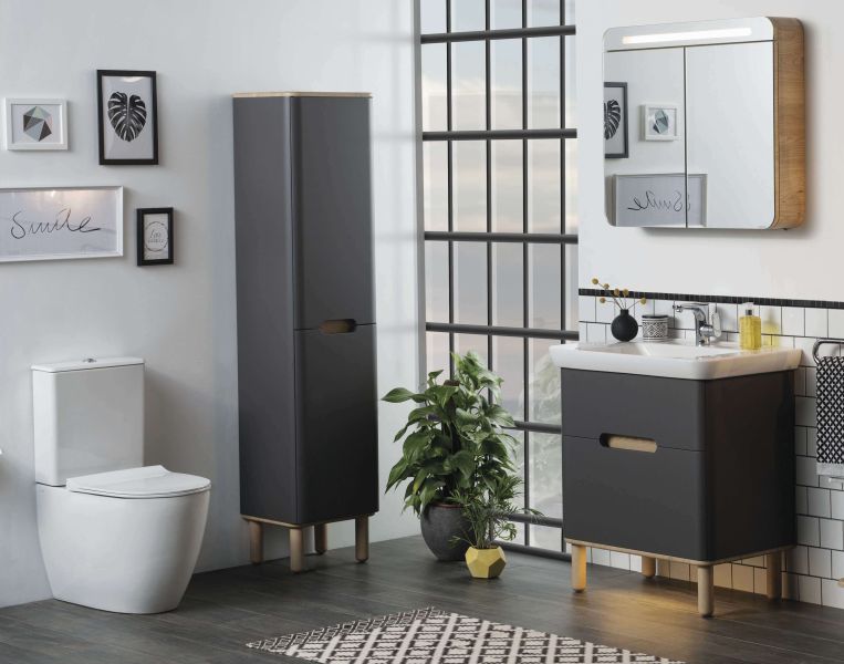 Шкаф Sento с раковиной, с 2 ящиками, 65 см, с LED подсветкой, цвет матовый антрацит ( ножки 61069 заказываются отдельно )