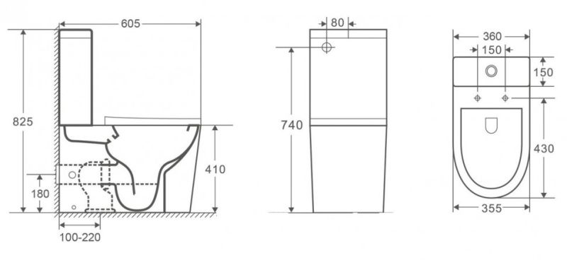 - Прилегание унитаза к стене:вплотную