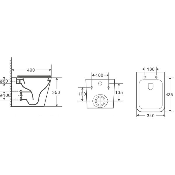 • Прилегание унитаза к стене: