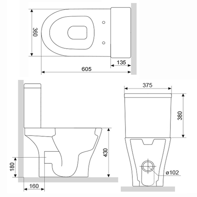 • Прилегание унитаза к стене: