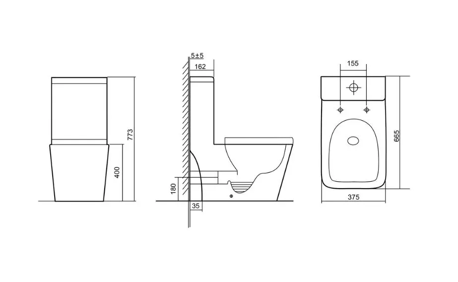 • Прилегание унитаза к стене: