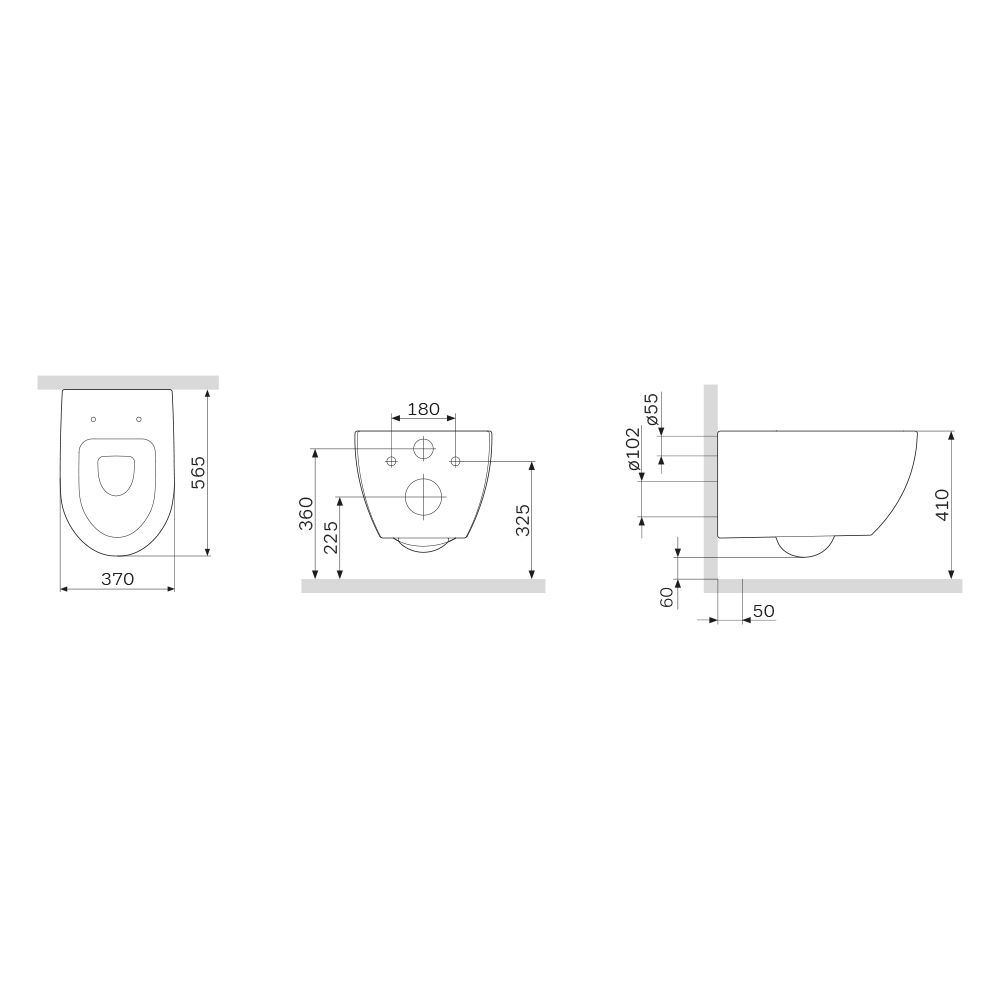 • Прилегание унитаза к стене:
