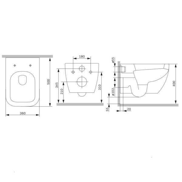 • Укороченный унитаз: