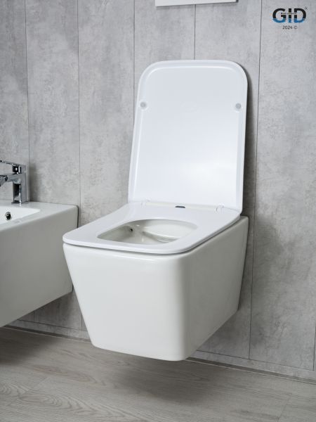 Серия Cuadrado — образец современного дизайна и испанского качества. Соответствие европейским стандартам гарантирует их долговечность. Подвесной безободковый унитаз GiD Tr2144 - это модель с горизонтальным выпуском, выполненная из мелкопористой керамики в белом глянцевом цвете. Оснащена быстросъёмным сиденьем из дюропласта с функцией микролифта, обеспечивающей плавное и бесшумное опускание крышки. Благодаря антигрязевому покрытию и воронкообразной квадратной чаше унитаз обеспечивает высокий уровень гигиены и легкость ухода. Комплект: подвесной унитаз GiD Tr2144 с креплениями для скрытого монтажа; сиденье с креплениями.