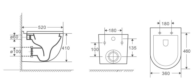 • Прилегание унитаза к стене: