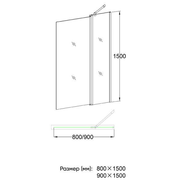 Неподвижная панель крепится пристенной штангой из нержавеющей сталиv