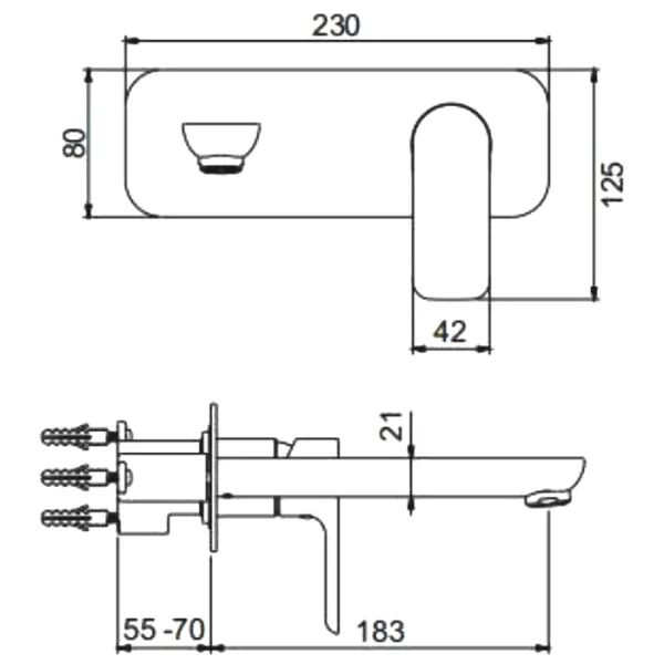 • Длина излива, мм: 183