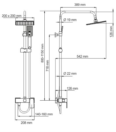 - Стойка для душа, Ø 22 мм регулируемая по высоте