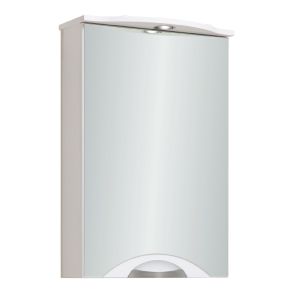 Зеркальный шкаф оборудован одним врезным светодиодным светильником 220В и розеткой с выключателем... Подробнее