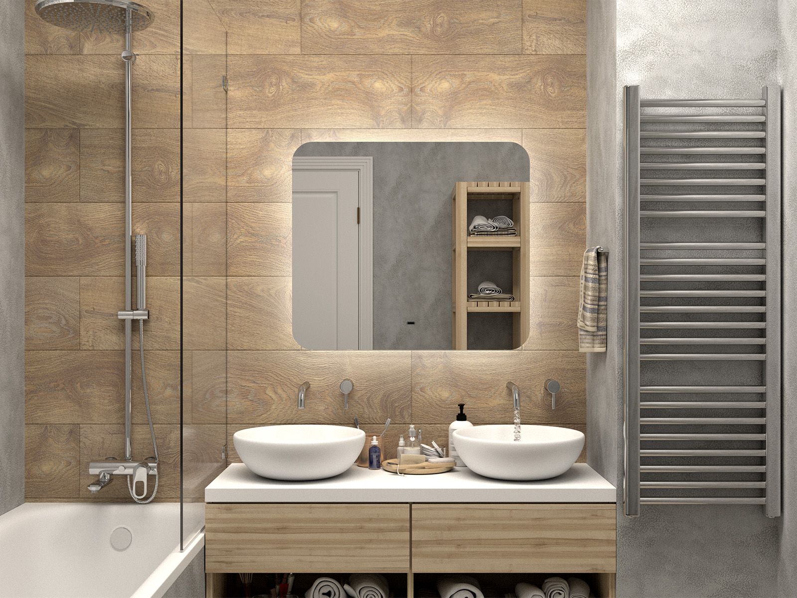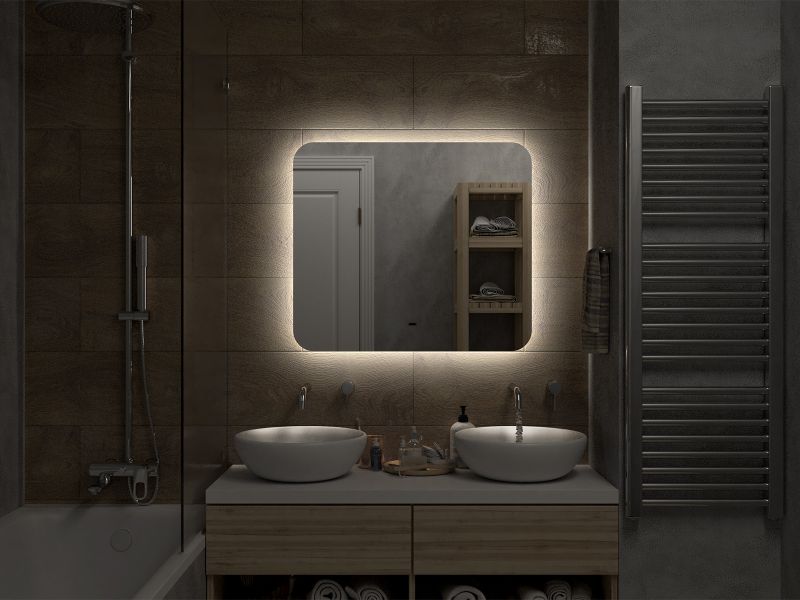 Зеркало с подсветкой для ванной комнаты — это элемент интерьера, который сочетает в себе функции, эстетику и современный дизайн. Его изящная форма и тонкие линии легко вливаются в любое пространство, создавая атмосферу утонченности и уюта.Интегрированная светодиодная подсветка обрамляет зеркало, даря мягкий, рассеянный свет, который не только позволяет удобно наносить макияж, но и наполняет ванную комнату теплом и позитивной энергией.Классический дизайн позволяет использовать его в различных стилях – от минимализма до современного эклектичного оформления. Оно прекрасно вписывается в любую цветовую гамму, будь то нейтральные тона или более яркие акценты.
