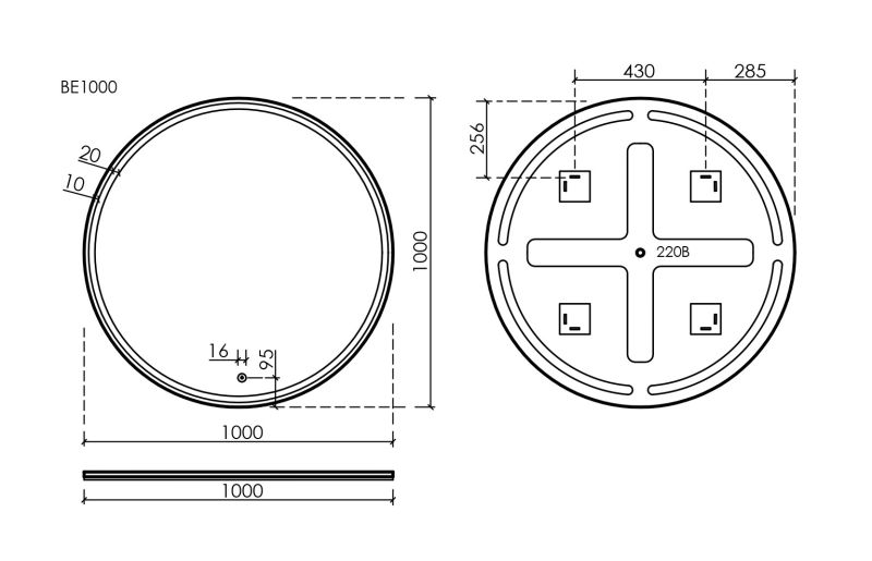 - Зеркало круглое с фронтальной подсветкой