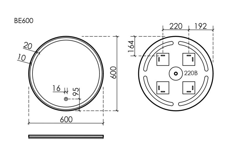- Зеркало круглое с фронтальной подсветкой