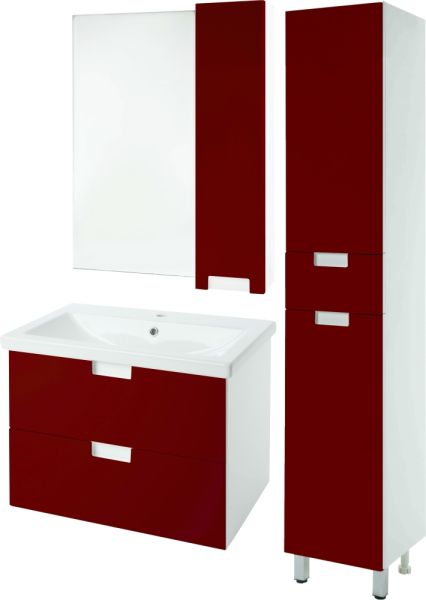В производстве используют только качественные влагостойкие материалы (ВЛДСП), в составе которых полностью отсутствуют опасные вещества. Данная серия выполнена в эксклюзивном дизайнерском решении в лучших традициях современного стиля. Красный, основной цвет исполнения Bellezza, гармонирующий с большинством интерьерных решений. Шкаф-зеркало предусматривает удобную и вместительную систему хранения. Зеркало Bellezza оснащено галогеновой подсветкой, позволяющей комфортно провести утренние процедуры.